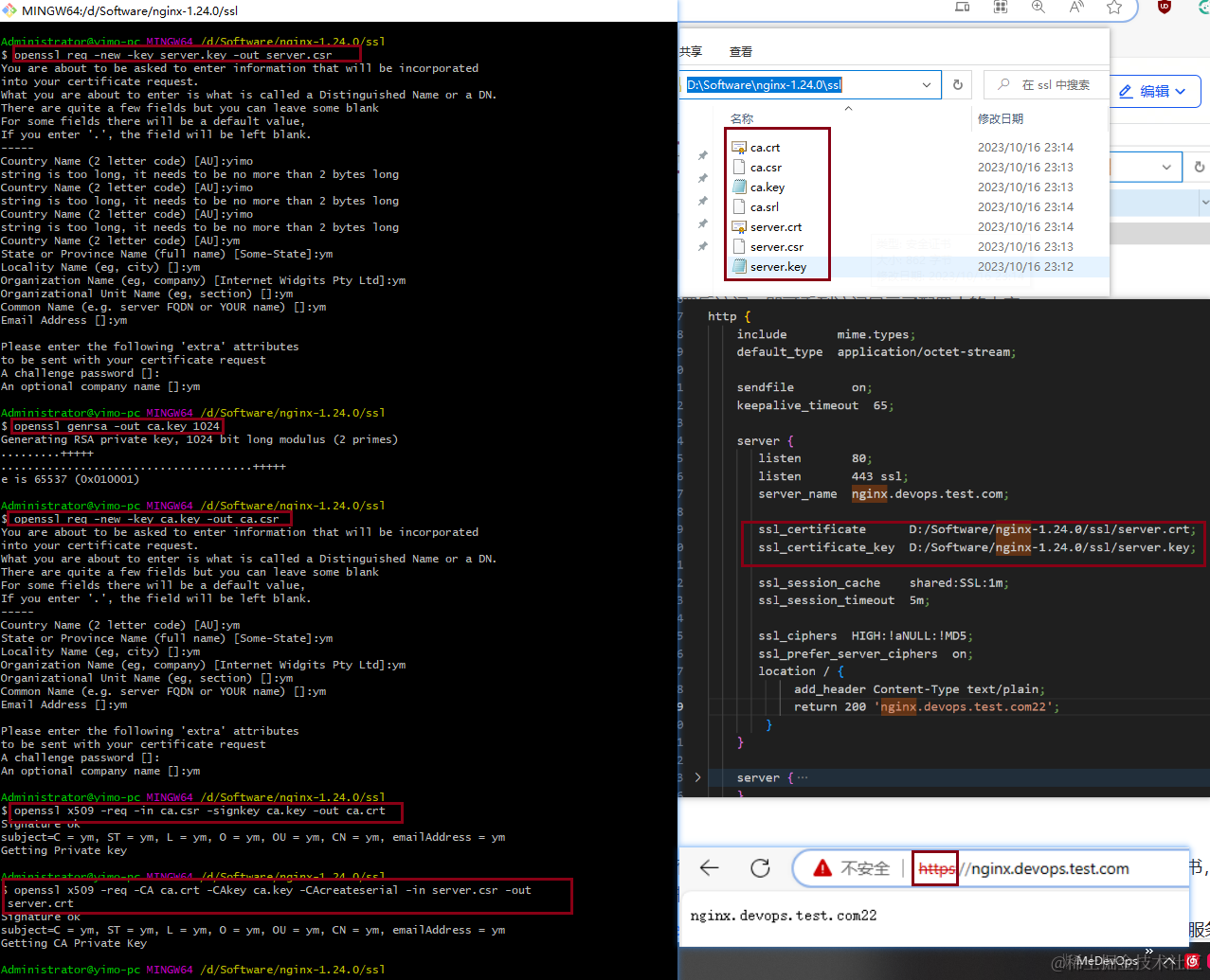 生成 CA 证书(所在目录:D:/Software/nginx-1.24.0/ssl)