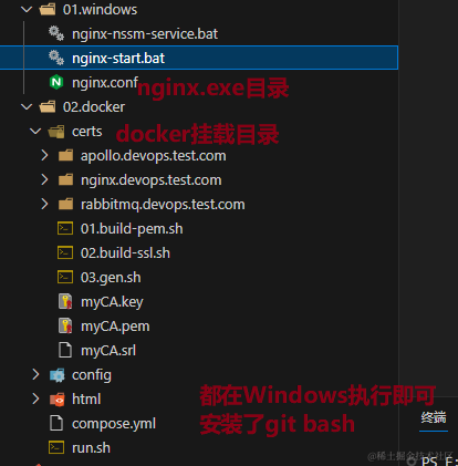 脚本本地目录预览,添加了系统判断 linux,执行需要给要执行的脚本添加执行权限:chmod +x ./01.build-pem.sh