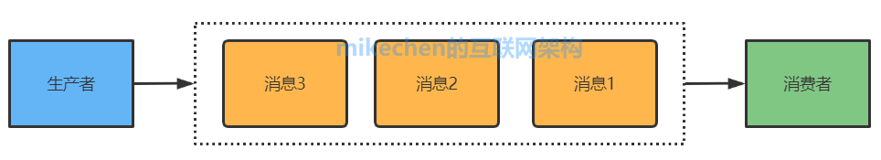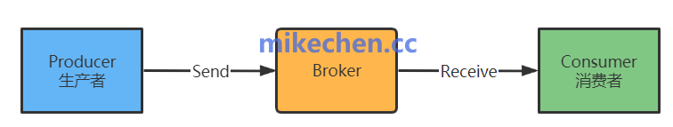 生产者将生成的消息,发送到消息代理(Broker),并指定消息应存储的队列、或主题。