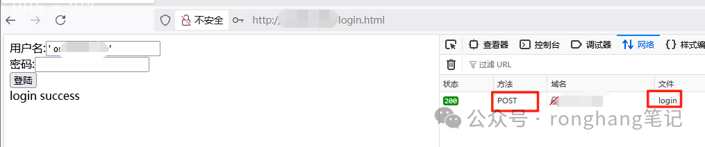 3. 注入被拦截,在配置post拦截参数以后的效果