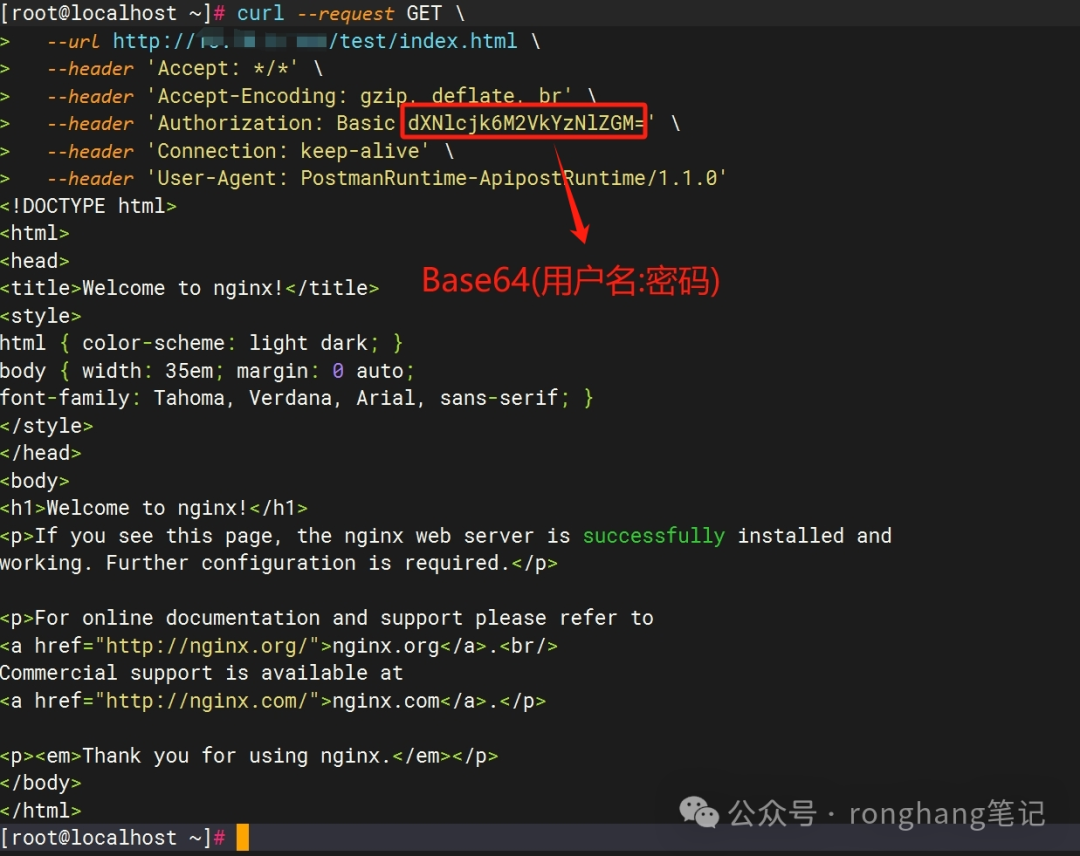 字段中传入用户名和密码。格式为Authorization:Basic Base64(用户名:密码)