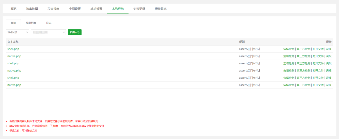 木马是网站安全的一大隐患,宝塔Nginx防火墙的木马查杀功能基于当前规则库进行扫描。用户还可以自行添加扫描规则,提高扫描的准确性。为了确保网站的安全,建议同时使用宝塔监测和第三方监测进行双重检查。如果有一方监测出webshell,建议立即删除此文件,避免造成更大的损失。