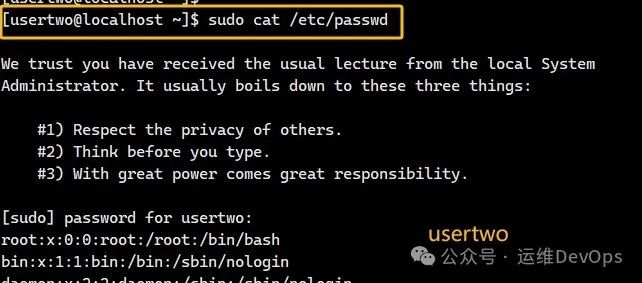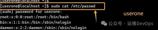3、切换到userone和usertwo,执行cat命令,如图:
