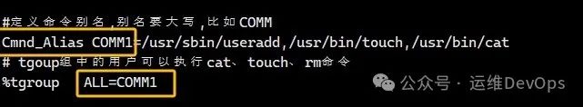 还可以通过Cmnd_Alias来定义别名,别名中填写命令,别名需要大写