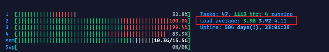 平均负载平均负载指的是单位时间内平均的活跃进程数,是一个表示服务器负载的指标。一般情况下需要保证平均负载的值小于当前服务器的CPU核数。 同样的,查看服务器平均负载我们也可以使用