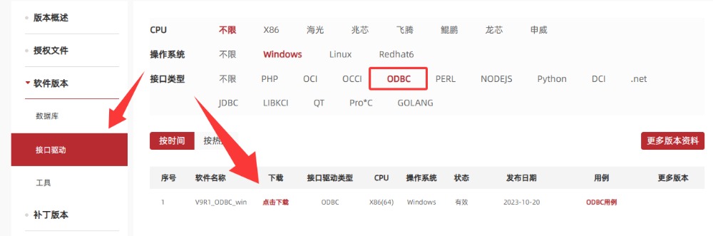 前往人大金仓官网驱动下载页,找到ODBC下载。