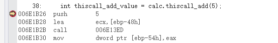 __thiscallthis指针通过寄存器, 剩余通过栈(右→左)被调用者清理栈C++类成员函数