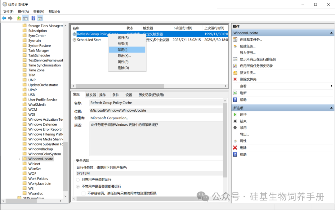 找到所有计划任务,右键点击【禁用】,逐个操作