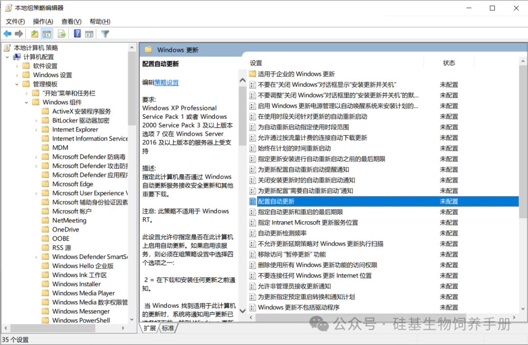 计算机配置 → 管理模板 → Windows 组件 → Windows 更新