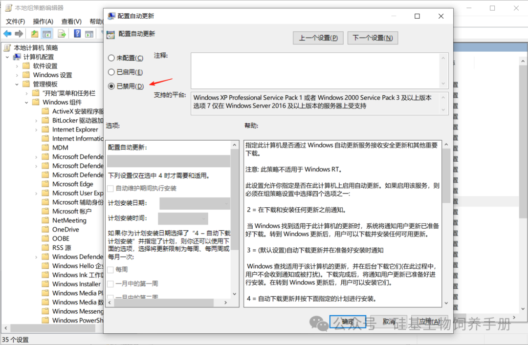 💥 方法三:组策略禁用自动更新【专业版/企业版】