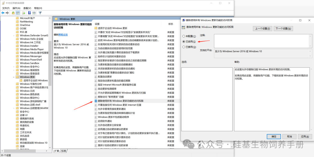 3. 找到【删除使用所有 Windows 更新功能的访问权限】 → 设置为【已启用】