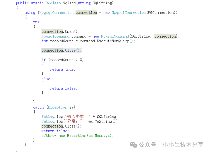 第三步执行 使用NpgsqlCommand类 执行数据库执行的 SQL 语句