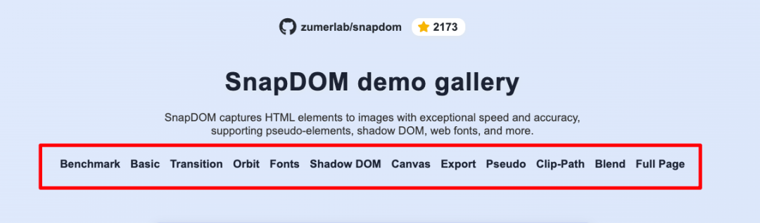 • 项目地址 :https://github.com/zumerlab/snapdom