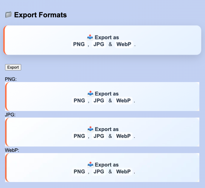 不管你是想要矢量图 SVG,还是常用的 PNGJPG,或者现代化的 WebP,又或者是需要进一步处理的 Canvas 元素,SnapDOM 都能满足你。