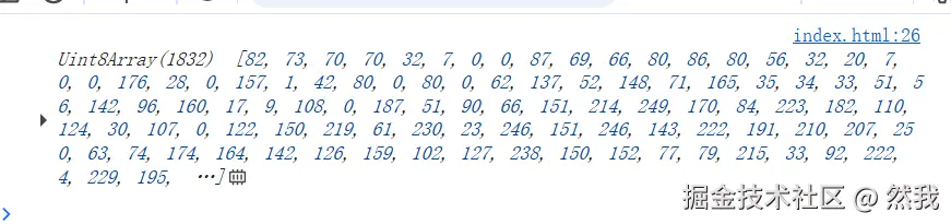 二进制字符串不方便直接操作,需要转成TypedArray(类型化数组) —— 这里用Uint8Array(8 位无符号整数数组),每个元素代表一个字节的二进制数据: