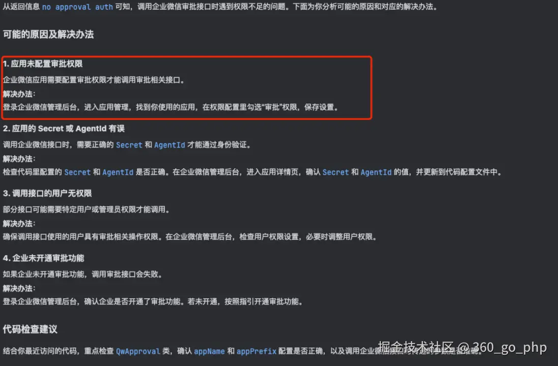 在企微的API文档中确认你所调用的接口是否需要特定的权限或者配置项。比如,有些接口需要管理员权限或企业微信的审批模块已经启用。