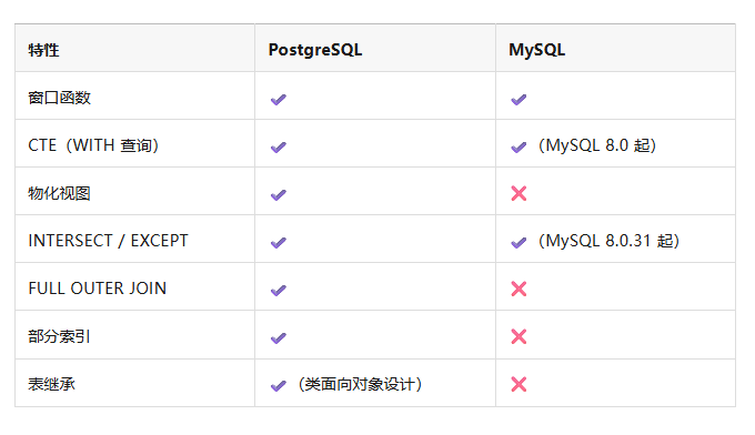 下面我们从多个维度对 PostgreSQL 16.x 与 MySQL 8.x 进行对比: 1)核心功能 2)查询能力 3)索引与性能 4)连接与并发 该文章在 2025/7/15 12:13:34 编辑过 |