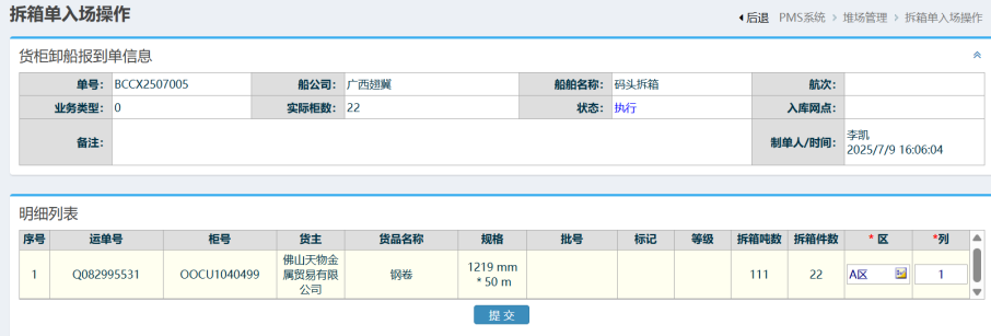 ​3. 进入界面后,核对清单,选中对应的区和列,点击“提交”按钮完成,