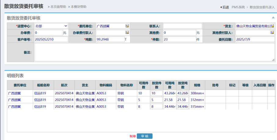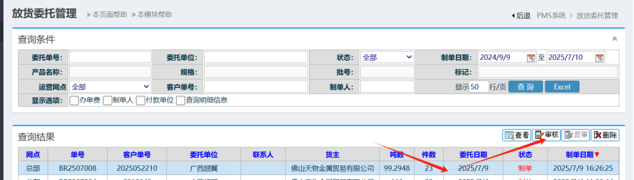 [点晴模切ERP]点晴PMS-审核散货放货委托单-操作流程