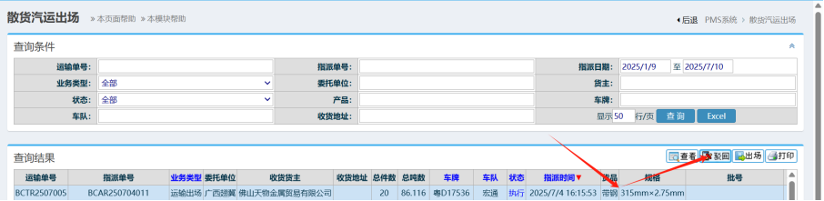 2. 进入界面后,用车牌号查询对应的单据,点击驳回按钮