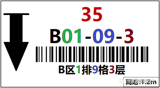 2.5 存储位(以存储平时配货动不到的货品为主)、拣货位(平时拣货,配货优先,方便取货的库位) 2.6 A类库位(取货放货非常方便的库位)、B类库位(取货放货方便度一般)、C类库位(取货放货方便最差的库位)我们在维护库位信息数据库的时候,下面这些信息尽量维护齐全:1.地区;2.楼栋;3.楼层;4.区域;5.移动/固定;6.巷道;7.排;8.组;9.格;10.层;11.长/宽;12.高;13.进深;14.承重;15.可用高度;16.可用容积;17.温度区间;18.离地高度;19.离主通道距离;20.取货便利性;21.存货SKU限制;22.是否限定品类;23.拆分库位数;24.上级库位;25.库位序号/简码;26.库位的中文全称;27.上架优先顺序;28.拣货优先顺序等。我们可以根据这些信息来判断、分析,哪些库位取放货方便,哪些库位适合存储什么货品;哪些库位先当先用,哪些库位后用;哪些库位适合什么季度使用等。我们先来看个示意图,同样的货架,同样的一个位置,但在不同的仓库,却有着不同的编码规则。不同的企业仓库库位编码有着不同的方法,没有社会标准,也没有行业标准,大家都认为适合自己的就好。事实上大企业与小企业,大仓库与小仓库,几十个仓库与只有一个仓库,库位编码的规则确实是不一样的。有的时候我们的库位编码,需要体现:地区码、仓库码、区域码、排号(或巷道号)、组号、格号、层号,但有的时候不需要。比如说有些仓库较小,整个仓库也就500个库位左右,那我们就可以直接用A001到A500就可以,不需要在库位编码上体现什么区域,什么排,什么格,哪一层,只需要在库位基础信息数据库中体现。这里的“A”可以是仓库的代码,也可以是区域的代码。如果仓库较多,库区面积较大,且库位较多,库位又分为不同的库区和类型,达到数万,那么我们就要体现区域和排号,以及组号,层号。无论编码是什么规则,总而言之,字段上最好不要超过10位数,中间的杠最好不要超过3个。对于全国性的仓库编码,库位编码中间的杠也尽量不要超过4个,且库位标识上该放大的信息要放大。现实中,我们最怕的就是教条化,不能灵活变通。无论什么仓库,我们在做库位编码的时候,尽量考虑以下几点:比如说:员工面对一组货架的时候,左边是小号,右边是大号,下面是小号,上面是大号,那么整个公司所有仓库,都尽量是这个原则,因为员工时间长了会形成习惯,如果库位排序规则不一样就会影响判断,甚至出错。也就是说,如果增加或减少(货架)库位,那么新增的库位编码会不会带来什么影响。如果因为到货量增加或减少,现有库位需要组合成大库位,要拆分成小库位,好不好办。D).员工不需要看的信息,意义不大的信息尽量不要体现在库位编码字段上。我们在库位编码和库位标签打印的时候,要尽量避免类似下面这两种情况:上图中第1种情况存在问题是库位编码显得复杂,字段较多,同时在打印的时候不显目,条码也小,不方便扫描;上图中第2种情况是库位编码字段当中没有用杠“—”区分,字数多,容易让人看花眼,好在打印标识的时候,在左边加上了中文注明。由于我们平时在仓库中配货是根据库位的排序进行拣货,那不同的库位编码规则就会有不同的库位排序。如果编库位的时候,是以排为单位,大多会出现下面的路线1;以巷道为单位,“左单右双”编库位,大多会出下面的路线2;有的仓库同一巷道是按U字形顺序编排库位,就会形成下面的路线3。总的来说,第2种路线相对会好一些。但需要注意的是,电商仓库与非电商仓库(如传统制造业、2B仓库)在编排库位时要求并不一样。虽然库位排序路径可能最短,但实际上个别库位拣货与大多库位拣货产生的路径是不一样的。可能看完上图,很多人都会认为第4种路线编排库位是最好的,但并不是,为什么呢?如果不是每个库位都需要拣货,那么人员在拣货时,走的路径就比较灵活。如下图:因为如果需要拣货的只有红色标注的这2个库位,请问我们还需要按箭头显示的路线行走吗?肯定不需要。所以只有在一个巷道大多库位需要拣货时,我们这样的设计才是最好的,否则就不一定好。当然,第1种路线肯定不好,但实际上很多企业只要是以排为单位编库位就是第1种行走路线。总的来说,库位设计,按第3种路线是相对较好的一种!如果我们一组货架或一个库位,只存储一种货品,我们可以称这组货架或这个库位为“A001”,但如果这组货架或这个库位放了多种货品,那我们就可以将这组货架各个货品的库位取名为:A001-1,A001-2,A001-3……至于我们将一个单位空间,划分为几个库位,是由存储多少种货品而定:说明:标签上的35可以代表B区第35个库位,以方便人员识别;不同的颜色有助于区别代码含义;文字描述可以方便新人,非仓库人员理解;注明离地高度,可以知道这个库位是不是方便取货;标有箭头是防止人员识别错误。
