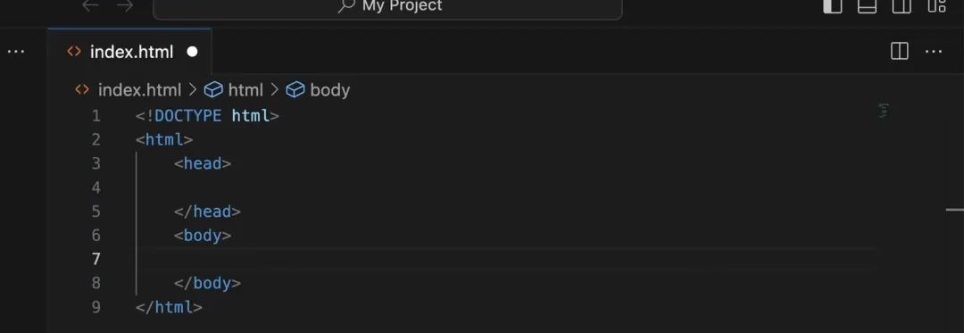 要你每次写代码都需重复以上步骤建立标签,会不会觉得有点过于繁琐?好消息好消息,为回馈新老用户,vscode现推出诚意大礼包,你只需要输入一个“感叹号”,加上tab键,vscode就会自动完成这些代码。在空白文件中输入"!"按"tab"键->自动补全基础结构