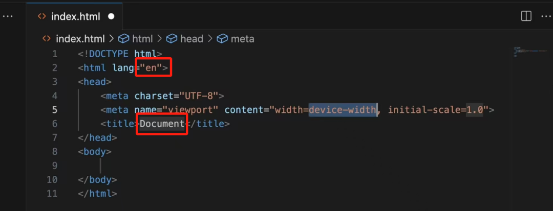 自动完成以上代码后,你只需要根据自身的个性化需求,做些简单修改即可。比如,除了网站语言以外,我们还经常要修改的地方,就是标题了如果你想看下自己所写代码实际的效果,,可以先在vscode界面ctrl+s进行保存;然后回到桌面打开对应文件夹,对着HTML网页左键双击,