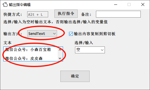 假设,我们让它输出一段文字,就可以点击“输出”,然后这么设置: