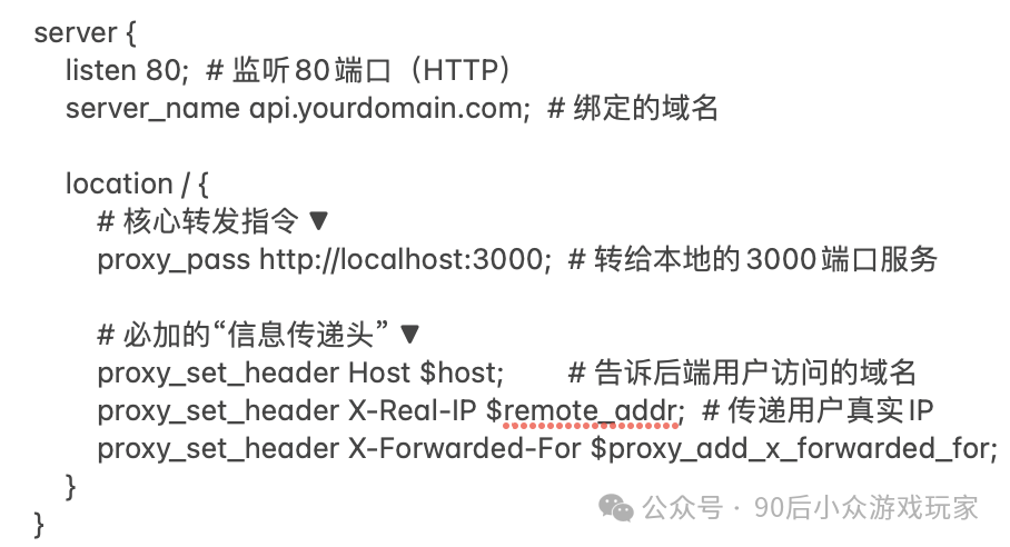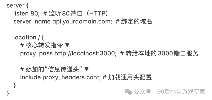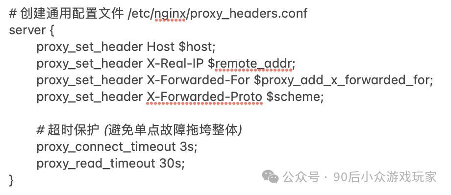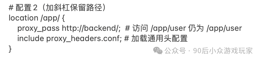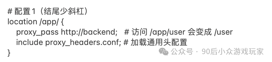 01 反向代理 我们类比一下银行柜台办理业务的场景,nginx相当于叫号机,服务器ABC分别对应不同的银行柜台。通过叫号机把客户分配给不同的柜台办理。 核心作用: 02 — 实例展示 场景一:把 重要原则:所有 避免重复写上面的传递头配置,我们可以用include来解决: 然后修改一下上面写法: 场景二:把不同请求导向不同服务器 03 — 踩过的坑 用户访问的是/app/user/profile,经过反代之后转发到http://backend/app/user/profile 用户访问的是/app/user/profile,经过反代之后转发到http://backend/user/profile 避坑总结: 1、proxy_pass结尾的斜杠本质是URI替换指令,有斜杠的情况下,用指定URI替换location匹配路径;无斜杠的情况下,拼接location路径到代理地址后。 2、使用调试模式,打印日志,帮助自己直观的看到结果。 阅读原文:原文链接 该文章在 2025/7/18 10:57:11 编辑过 |