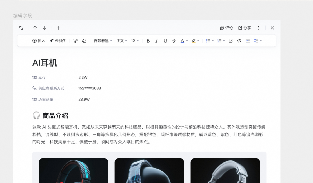 这意味着,用户需求、产品方案等文档都可以整合到AI 表格中,大大提升用户体验,也更便于 AI 理解。