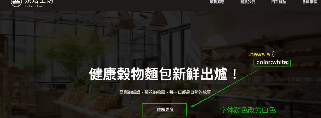 .news p {               /* 选择所有在.news类元素内的<p>段落 */    color:#FEF7E6;      /* 设置文字颜色为暖白色(带浅黄调) */    font-size:18px;     /* 设置基础字号为18像素(正文标准大小) */    margin:25px 0;      /* 设置上下外边距25px,左右外边距0 */}