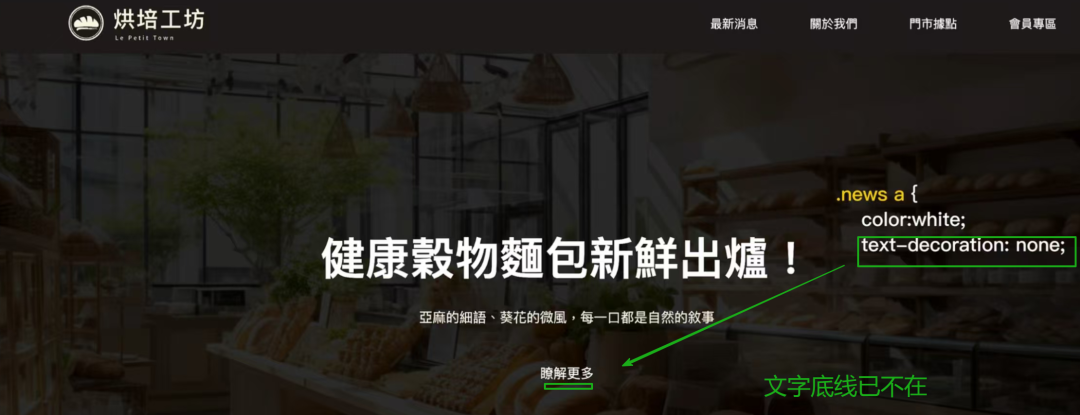 接下来,用text-decoration,移除<a>标签文字的下划线