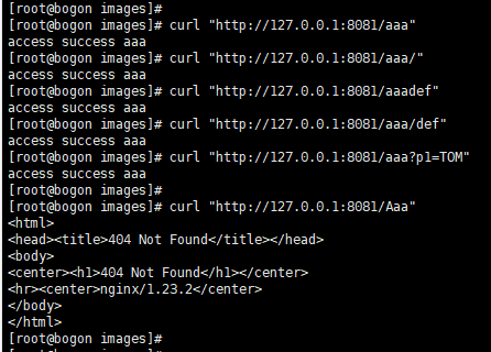 # 如果规则(后面跟/目录符号) location /aaa/ { 则只能匹配到下面两行: