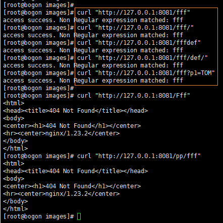 return 200 "access success. Non Regular expression matched: fff  \n\r";