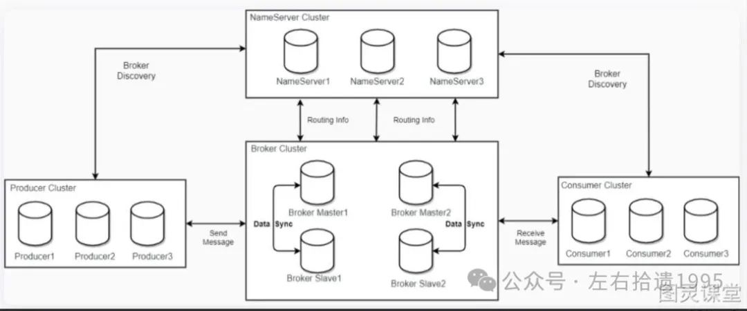 - • NameServer:可以理解成注册中心,负责更新和发现Broker服务。在NameServer的集群中,NameServer与NameServer之间是没有任何通信的,它是无状态的。