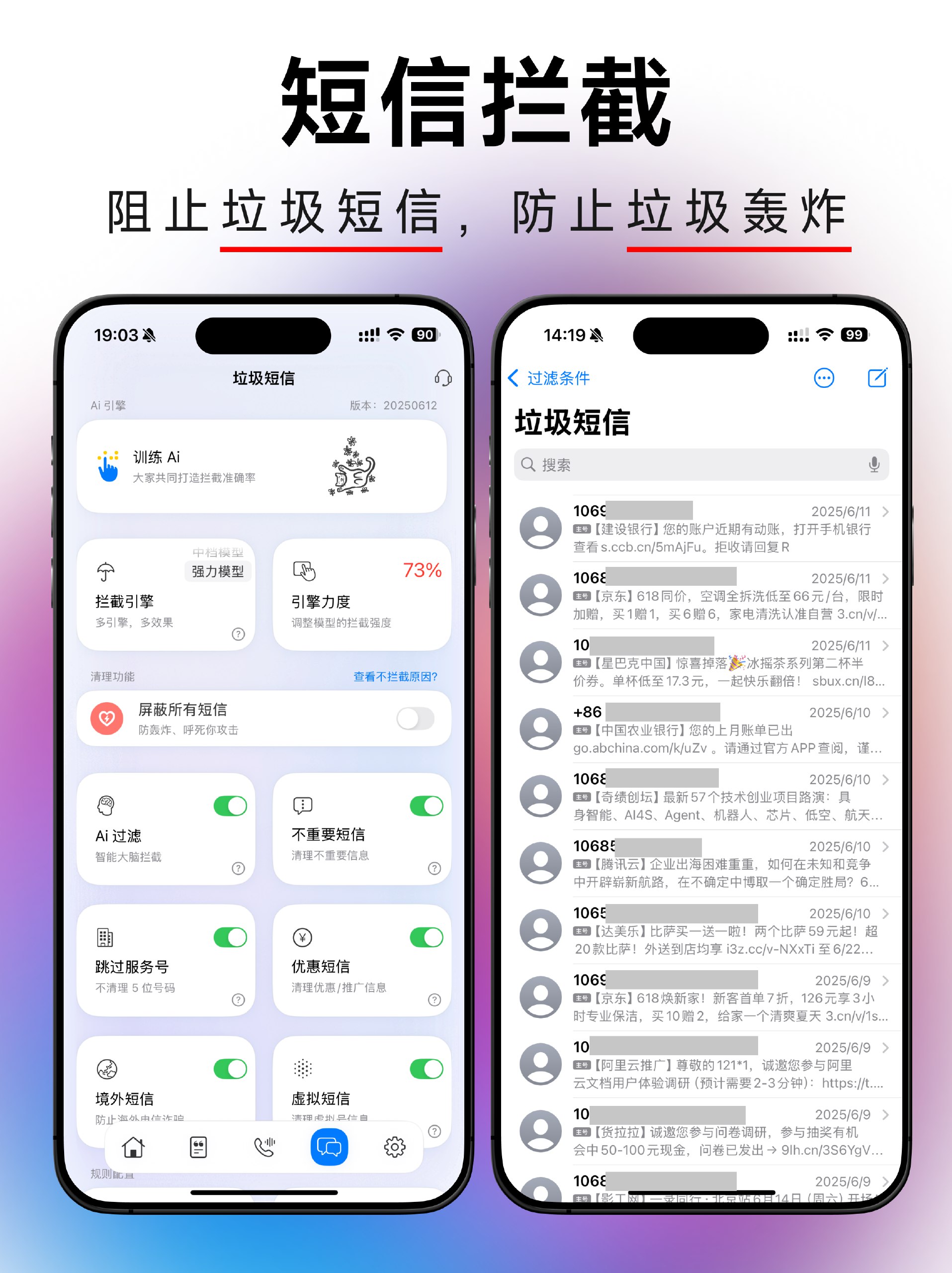 因苹果系统权限不开放,依托本地离线和规则引擎,目前普遍能做到 60% - 80% 的拦截率。