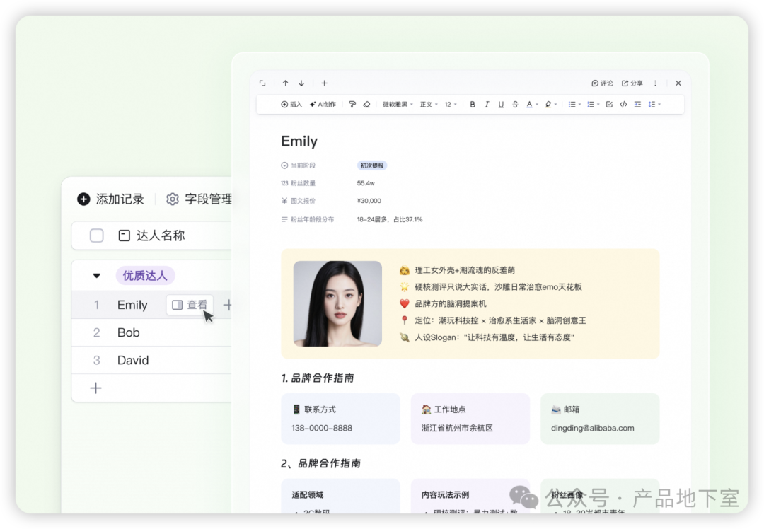 钉钉AI表格出了一个新功能:记录即文档。这里的记录,指的是表格的一行数据。