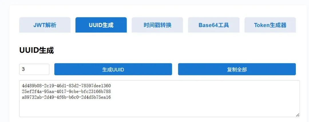 - 自带常用工具:JWT解析、UUID生成、时间戳转换、Base64编解码、Token生成器支持,方便使用