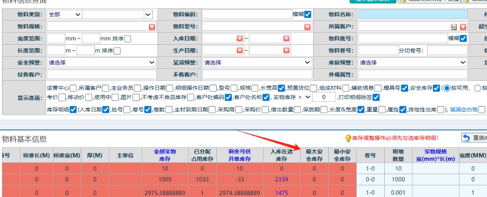 ![]() ![]() 勾上安全库存后再查询,库存明细行会变红 如下图: