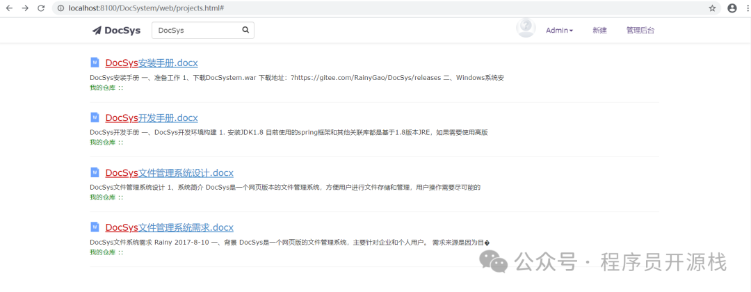 整个系统模块化设计清晰,便于功能扩展和维护。 项目体验 项目效果部署完成后,用户可以通过浏览器访问 MxsDoc 的 Web 管理界面,进行文件上传、下载、编辑、分享、搜索等操作。 系统界面简洁直观,操作逻辑清晰,即便是初次使用的用户也能快速上手。文件管理功能完善,支持多仓库管理,每个仓库可独立配置权限、加密策略、备份规则等。 在协同办公方面,Office/WPS 文件的在线预览和编辑功能非常实用,无需依赖本地软件即可实现多人协作。AI 功能的接入也使得知识库内容的搜索与处理更加智能化。 集群部署的支持,使得系统在企业级应用中也具备良好的扩展性和稳定性。 多仓库支持支持定义各自的文件存储、版本管理、权限管理、全文搜索和文件加密规则 存储更安全本地化文件存储方案,避免系统意外损坏对仓库文件造成影响 历史版本采用目前最流行的SVN和GIT版本仓库,支持增量历史版本管理,支持脱离MxsDoc系统进行访问 在线编辑支持各种文本文件在线编辑,支持Office/WPS文件协同编辑,无任何外部依赖(无需安装和部署其他Office编辑软件或系统) AI大模型接入支持接入Deepseek、Ollama等多种AI大模型,让知识库更加智能 文件分享支持文件和目录分享,支持访问权限设置和密码访问控制 全文搜索支持文件名、文件备注、文件内容搜索,让文件查找更加快捷方便 后台管理支持用户管理、用户组管理、仓库管理、系统管理 集群部署支持热插拔式集群,服务器可随时加入或退出集群,支持参数一致性检测,无需人工检查 项目源码源码托管在 GitHub 和 Gitee 上,便于开发者下载、学习和二次开发。 GitHub:https://github.com/RainyGao-GitHub/DocSys/releases Gitee :https://gitee.com/RainyGao/DocSys 项目包含完整的安装包、升级包和部署说明,适合不同阶段的开发者使用: