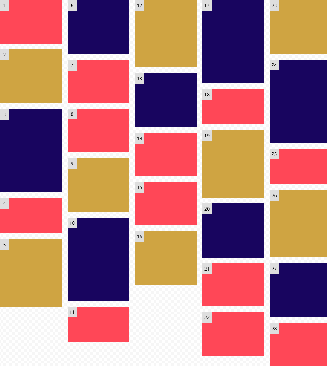虽说 grid 也能做出瀑布流效果,不过需要指定每个网格单元的占用大小。