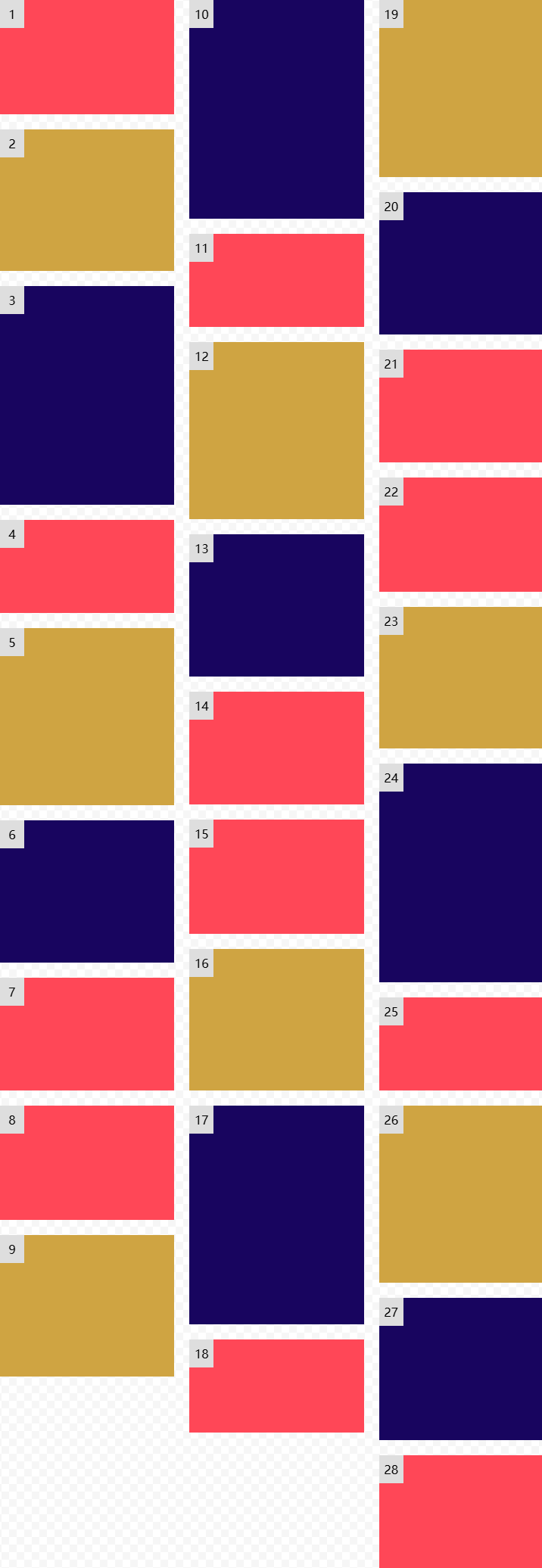 如上图所示,瀑布流就是让内容按列显示,自动填充空白。