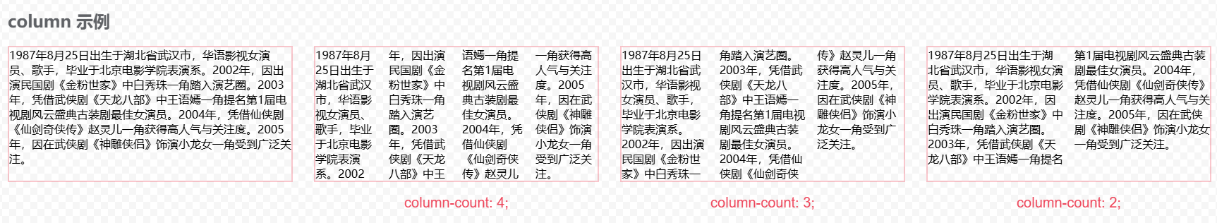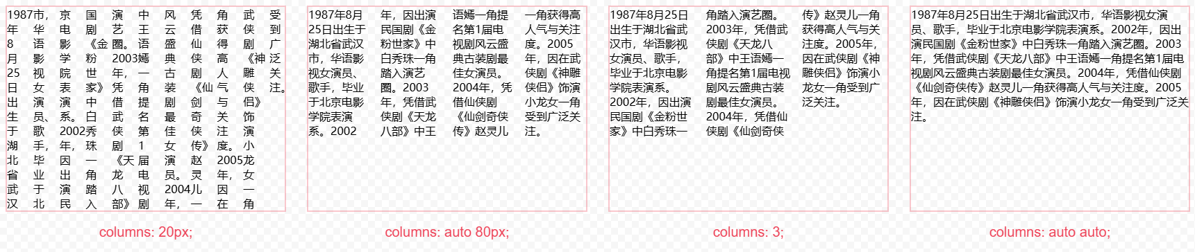 在多列布局方面 column 属性相比于 flex 和 grid 而言,显得更有优势。