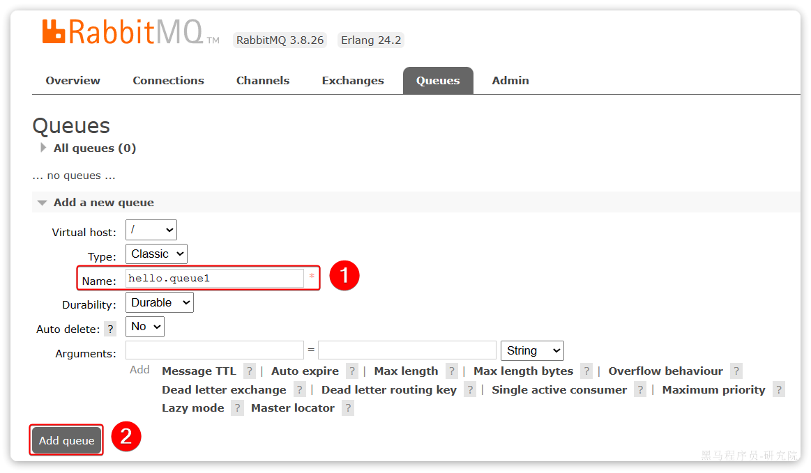 再以相同的方式,创建一个队列,密码为hello.queue2,最终队列列表如下:
