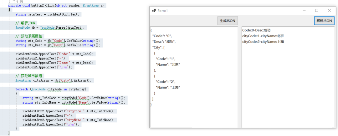 解析JSON数据并提取信息显示在另一个RichTextBox中
