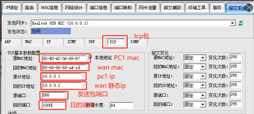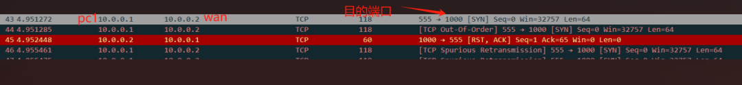 但是没有成功建立连接,下面我将用实际设备进行端口转发发包验证