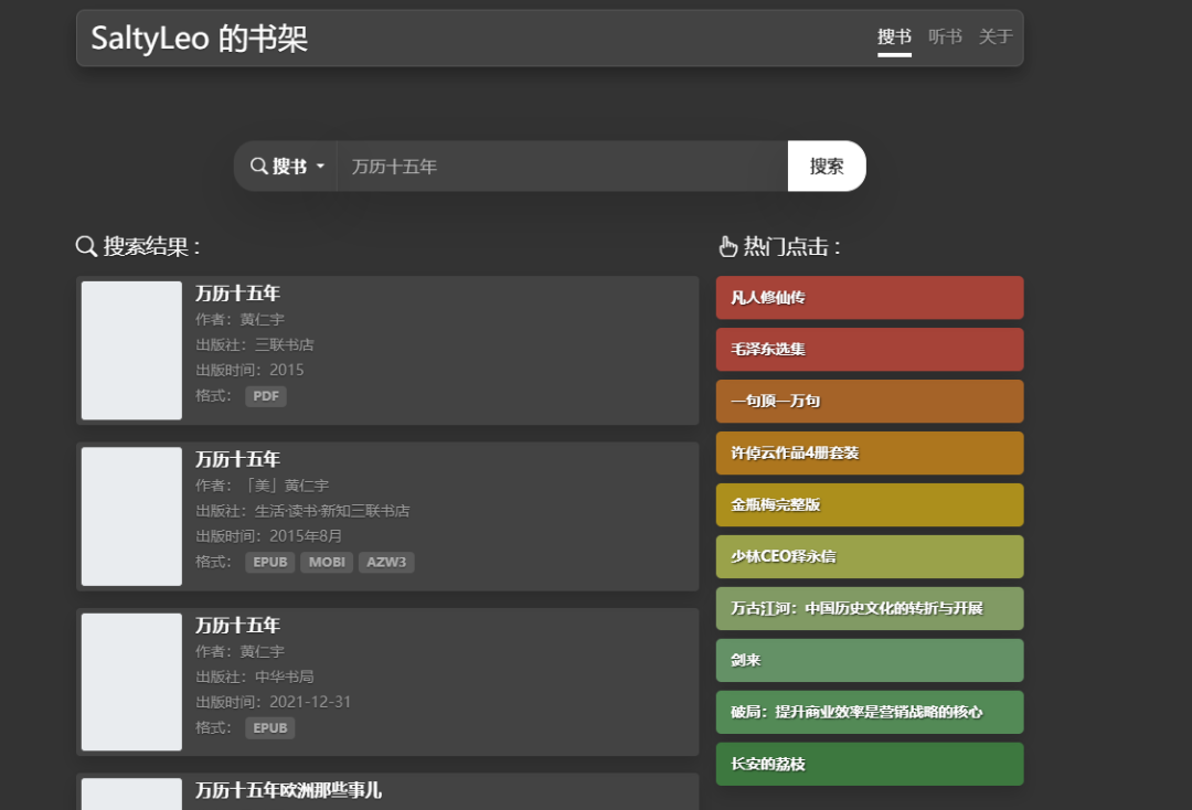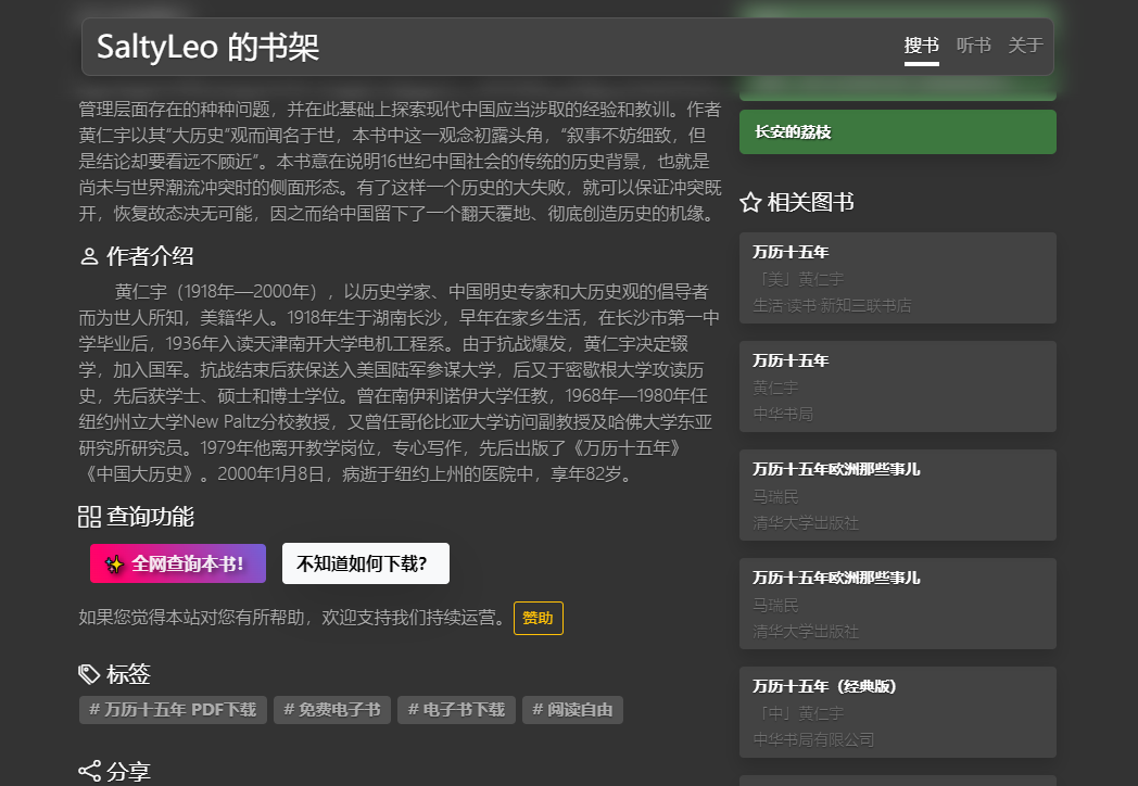 [点晴永久免费OA]SaltyLeo的书架:整合全球电子书资源的智能阅读平台,提供千万级正版与开源书籍的即时检索服务