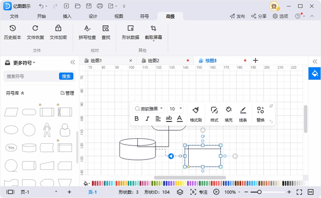 4、当鼠标移至符号图形上方,符号四边会显示带箭头的连接器,点击连接器就可以实现极速连线。当然,你也可以自己拖动生成连接线。
