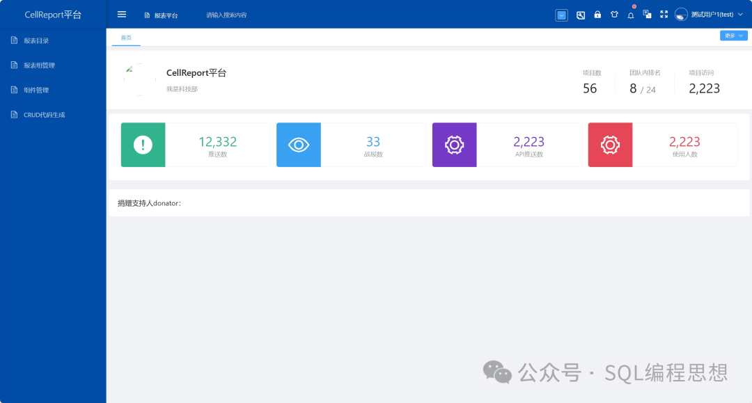 在线体验CellReport 提供了一个在线演示环境,网址如下: http://20.169.235.199/index.html 使用默认的用户名/密码(test/123456)进行登录: 下载安装CellReport 前端设计器采用基于vue、luckysheet、echarts等前端技术实现的网页方式,后端报表引擎核心基于 .NET Core 6 实现。 首先,下载安装 .NET 6.0 SDK 或 ASP.NET Core Runtime 6。然后下载最新版本的 CellReport: https://gitee.com/NoneDay/CellReport/releases/ 将下载的 zip 文件解压,执行 start.bat 或者 start.sh 运行程序。然后在浏览器中输入以下地址进行访问: http://127.0.0.1:5000 默认的用户名密码为:admin/database!123 ,可以在 appsetting.json 文件中进行配置。 详细信息可以参考在线文档: https://noneday.github.io/CellReport/ 阅读原文:原文链接 该文章在 2025/8/8 13:10:06 编辑过 |