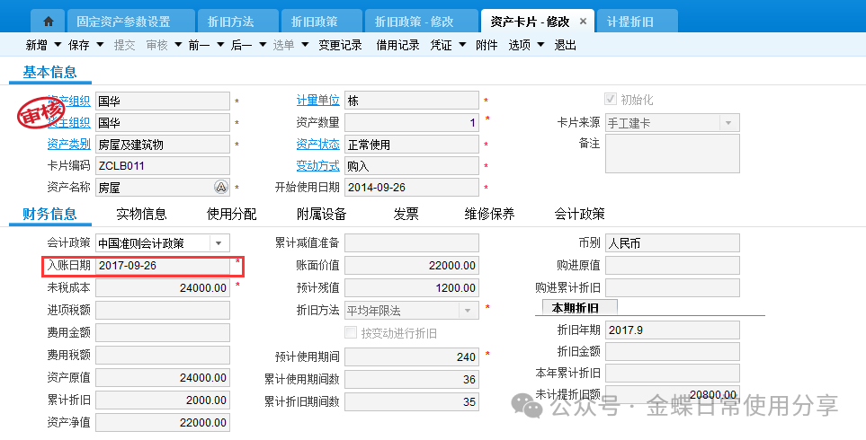 [点晴模切ERP]金蝶云星空企业版(标准版)固定资产操作手册